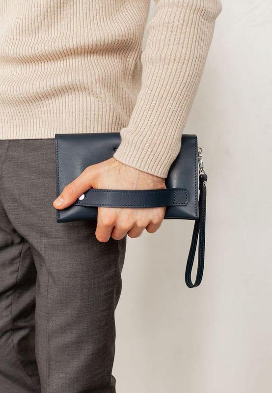 Шкіряний чоловічий клатч-барсетка 3.0 синій краст