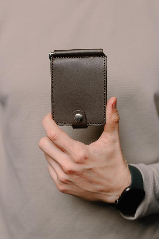 Затискач для купюр із натуральної гладкої шкіри sr013 (коричневий)