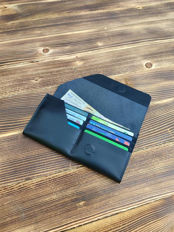 Кожаный клатч ручной работы, черный портмоне, кошелек