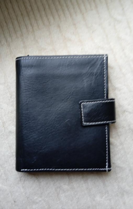 Кожаное портмоне с многочисленными карманами и отделениями для карточек,монет и купюр.Стан нового, имеет незначительные нюансы на фото, в цену учтению.Без торга. Размер : в закрытом/ развернутом состоянии:В/ длина -10×7.5/17.5см.