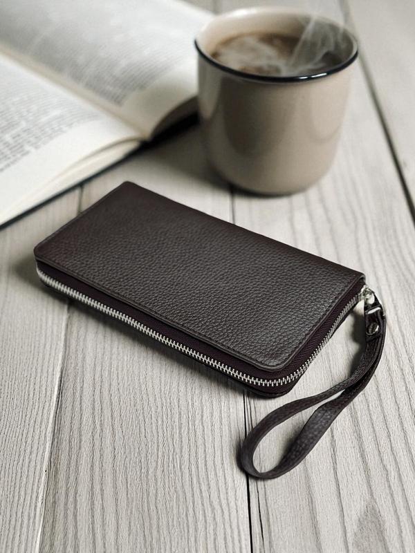 Мужской клатч-кошелек из натуральной зернистой кожи коричневый