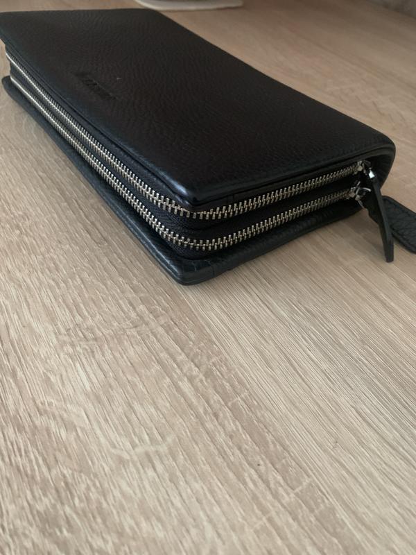 Шкіряний чоловічий гаманець/портмоне, має багато відділень, застібаеться на блискавки, мьякий та приємний на дотик, новий. З магазину Miraton.