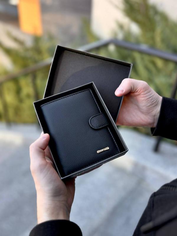 Многофункциональное мужское портмоне, которое обеспечивает надежное хранение ваших документов, наличных и кредитных карт стильно, удобно, надежно – это идеальный выбор для успешного и стильного мужчины •Характеристика портмоне: -Материал: натуральная кожа Размер: 12 см х 9,5 см -Цвет: черный -Паковка: стильная фирменная коробочка •Структура: - 2 секции для банкнот (один из них с отделением на молнии) -7 слотов для кредитных карт - 1 монетница на кнопке - 3 слота под прозрачной пленкой для фото или документов - 1 закрытый слот для фото или документов Артикул: D182 Для подачи заказа напишите нам в частный, или в наш инст: VILAMIZS