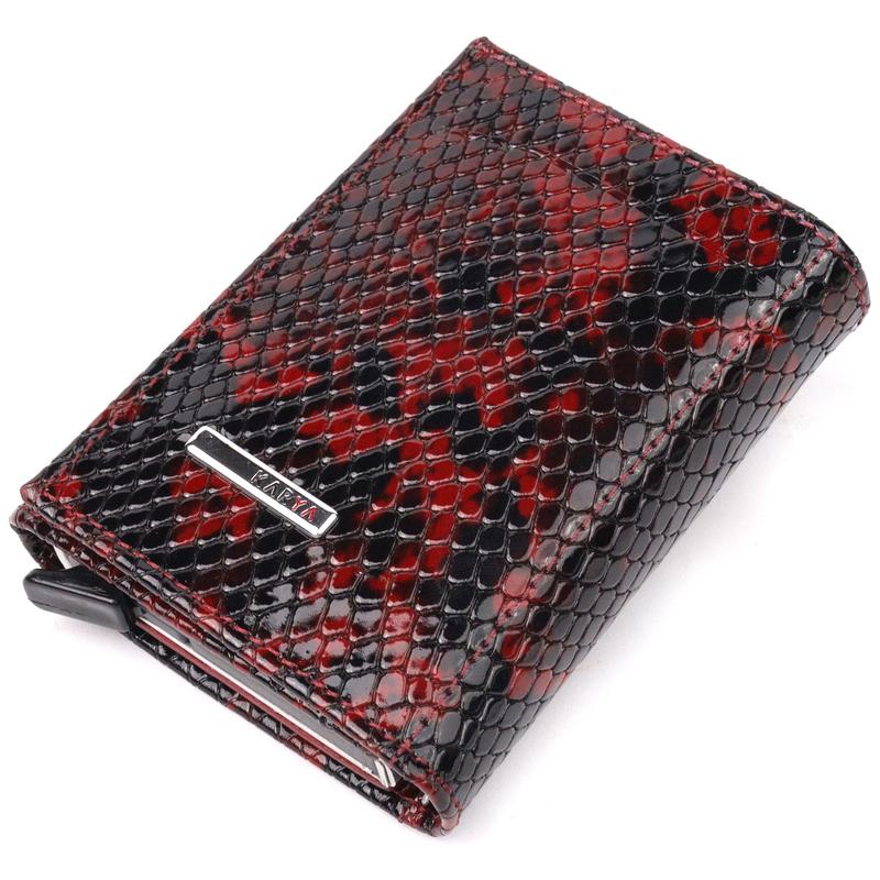 Цвет: разноцветный; Материал: натуральная кожа высокого качества; Размер (ШхВхГ, см): 8х10х2,5 см; Страна производитель: Турция. Описание: - одно отделение для бумажных денег; - металлическое отделение для семи пластиковых карт с самооткидным механизмом; - три автономных ячейки для карточек; - внутри ячейка под сеточкой для фото или документов; - закрывается на кнопку; - изделие упаковано в фирменную коробку. Стильный картхолдер из лакированной кожи, с тиснением под змею, предназначен для хранения банковских и дисконтных карт и небольшого количества наличных. Имеет лаконичный дизайн, отлично ложится в руку, помещается в карман, а также в любую сумку. Кожа мягкая, приятная на ощупь. Механизм работает надежно и удобен в использовании; карточки хорошо закреплены в аксессуаре. Отличная идея для подарка близкому человеку.
