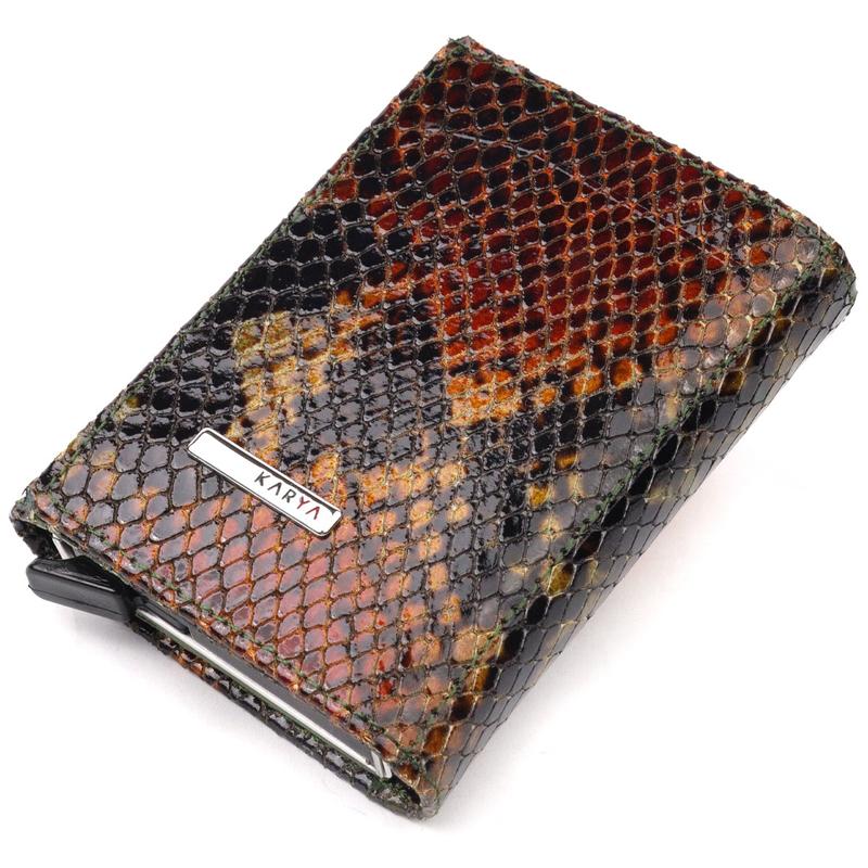 Лакированная визитница из натуральной фактурной кожи под змею karya 20988 разноцветный