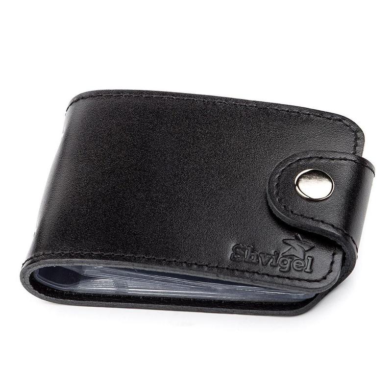 Материал: натуральная кожа; Размеры (ШхВ, см): 10х7; Цвет: черный; Страна производитель: Украина. Описание: - 20 двусторонних файлов для визиток и кредитных карт; - закрывается хлястиком на кнопку; Надежная визитница из натуральной кожи, мягкой и приятной на ощупь. Аксессуар прошит прочной светло- коричневой нитью, что отлично вписывается в дизайн и продлевает срок службы изделия.