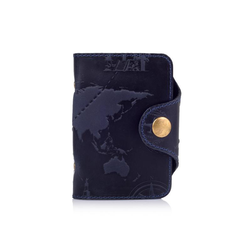 Эргономический картхолдер синего цвета с натуральной матовой кожи, коллекция "7 wonders of...