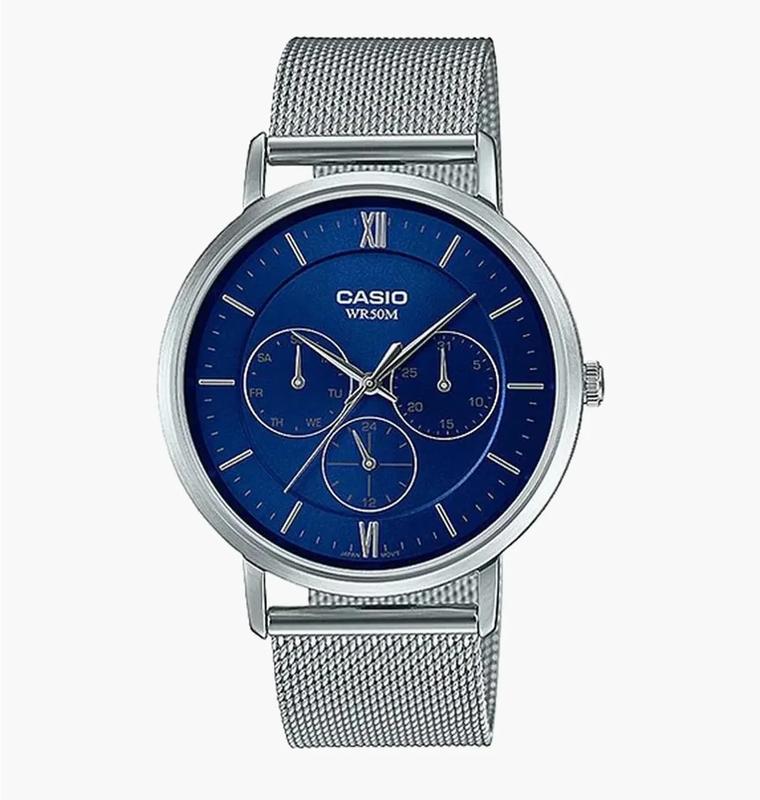 Описание часов Casio MTP-B300M-2A Casio MTP-B300M-2A -- стильные мужские часы в классическом исполнении, сочетающие надежность, практичность и современный минималистичный дизайн. Модель выполнена из нержавеющей стали, что обеспечивает высокую прочность корпуса и браслета, а также долговечность в ежедневном использовании. Часы имеют водонепроницаемость 50 м, поэтому легко выдерживают дождь, мытьё рук и бытовые брызги. Минеральное стекло защищает циферблат от царапин, а кварцевый механизм обеспечивает точное и стабильное отображение времени. Циферблат выполнен в классическом стиле -- со строгими индексами и римскими цифрами, что делает считывание времени максимально удобным. Универсальный серебристый цвет корпуса и браслета добавляет модели элегантности и подойдет под любой стиль одежды. Casio MTP-B300M-2A -- идеальный выбор для мужчин, которые ценят надежность, стиль и комфорт каждый день. * * * Характеристики Основные - Бренд: Casio Original - Модель: MTP-B300M-2A - Пол: Мужские - Стиль: Классический - Страна-производитель: Япония - Гарантия: 24 месяца Корпус - Материал корпуса: Нержавеющая сталь - Цвет корпуса: Серебристый - Форма корпуса: Круглая - Диаметр: 48 мм - Толщина корпуса: 40 мм - Размеры: 40 × 48 мм - Водонепроницаемость: 50 м - Стекло: Минеральное Циферблат - Тип циферблата: Стрелочный - Вид циферблата: Индексы, римские цифры - Индикация: Часы, минуты, секунды - Подсветка: отсутствует Механизм - Тип механизма: Кварцевый - Функции: Время Браслет - Тип крепления: Браслет - Материал: Нержавеющая сталь - Цвет браслета: Серебристый - Длина: 24 см - Вес часов: 90 г