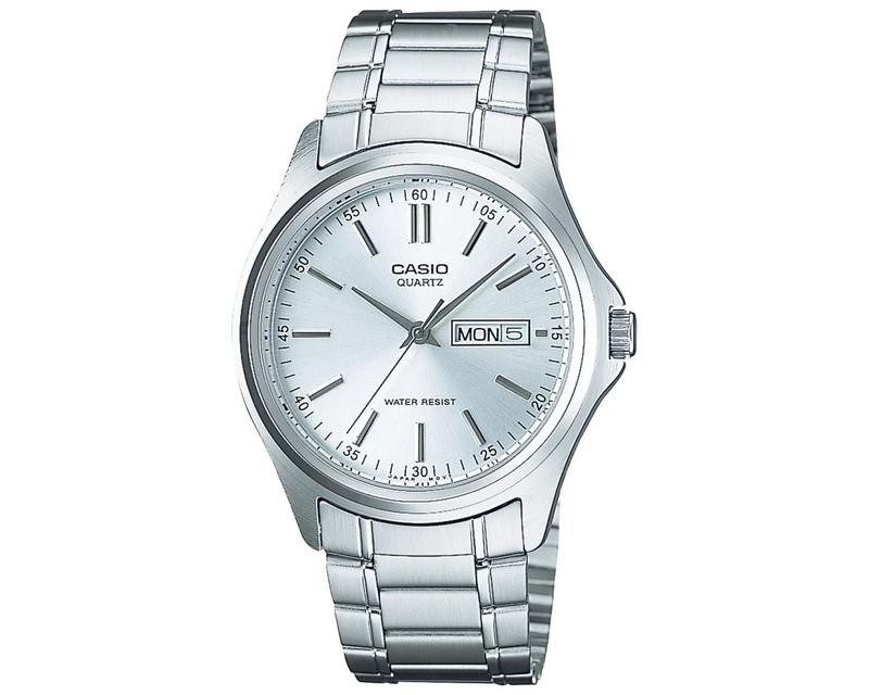 Мужские часы Casio MTP-1239D-7ADF (Standard Analogue) Мужские наручные часы Casio MTP-1239D-7ADF из коллекции Standard Analogue -- это классическая модель от известного японского бренда, созданная для ежедневного использования. Часы сочетают в себе сдержанный дизайн, надежный кварцевый механизм и удобный функционал. Корпус часов изготовлен из латуни и имеет серебристый цвет, что придает модели универсальный и аккуратный вид. Корпус круглой формы с размерами 42 × 38,5 мм и толщиной 8,7 мм хорошо сидит на запястье и подходит для руки обхватом 15-17 см. Вес часов составляет 95 грам, что обеспечивает комфорт при ежедневной носке. Циферблат выполнен в сером цвете, имеет четкую аналоговую индикацию и хорошо читается. Модель оснащена индикатором даты и дня недели, что делает часы практичными в повседневном использовании. Защита циферблата обеспечивает минеральное стекло, устойчиво к царапинам и мелким механическим повреждениям. Внутри установлен кварцевый механизмкоторый гарантирует точный ход и минимальные отклонения во времени. Питание осуществляется от батарейки со сроком службы до 2 лет. Часы имеют водозащита 30 WR, что позволяет не снимать его во время дождя или умывания, однако модель не предназначена для купания или плавания. Браслет изготовлен из нержавеющей стали, имеет надежное крепление и регулируется под обхват запястья до 23 см, обеспечивая удобную и надежную фиксацию. Комплектация: - оригинальные часы Casio - официальный гарантийный талон 24 месяца - фирменная упаковка - инструкция по эксплуатации Casio MTP-1239D-7ADF - это надежные классические мужские часы, которые подойдет как для работы, так и для повседневной носки. Удачный выбор для тех, кто ищет сдержанный дизайн, функциональность и проверенное качество Casio.