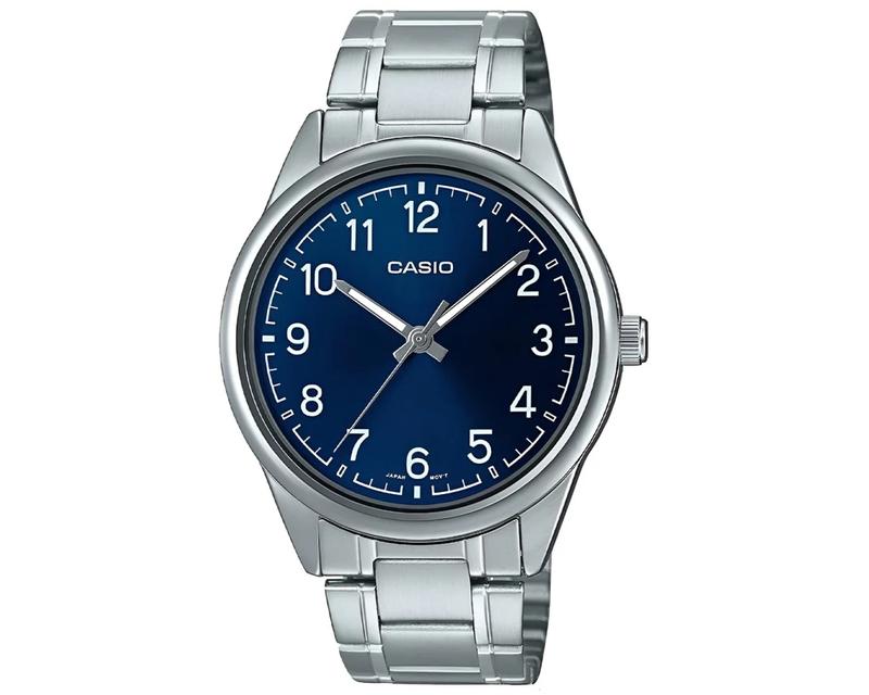 Чоловічий годинник Casio MTP-V005D-2B4 (Standard Analogue) Чоловічий наручний годинник Casio MTP-V005D-2B4 з колекції Standard Analogue -- це класична модель від японського бренду Casio, створена для щоденного носіння. Годинник поєднує стриманий дизайн, зручні розміри та перевірену кварцову точність, що робить його універсальним аксесуаром для будь-якого стилю одягу. Корпус годинника виготовлений з латуні та має сріблястий колір. Кругла форма корпусу з розмірами 47 × 40 мм і товщиною 8,1 мм забезпечує комфортне розміщення на зап'ясті та акуратний зовнішній вигляд. Модель оптимально підходить для зап'ястя обхватом 15-17 см. Вага годинника становить 90 грам, що робить його легким і зручним у повсякденному використанні. Циферблат виконаний у чорному кольорі, має класичну аналогову індикацію та добре читається за будь-якого освітлення. Стрілки оснащені люмінесцентним покриттям, що дозволяє легко зчитувати час у темряві. Захист циферблата забезпечує мінеральне скло, стійке до подряпин і незначних механічних пошкоджень. Годинник оснащений кварцовим механізмом Casio (ID модуля 5361), який гарантує стабільну та точну роботу з мінімальними відхиленнями. Надійність механізму робить модель практичним вибором для щоденного носіння. Водозахист 30 WR забезпечує захист від бризків води, дощу та під час вмивання, однак годинник не призначений для купання чи плавання. Браслет виготовлений з нержавіючої сталі, має класичний вигляд та надійно фіксується на руці. Максимальний обхват браслета -- до 22 см, з можливістю регулювання під індивідуальний розмір зап'ястя. Комплектація: - оригінальний годинник Casio - офіційний гарантійний талон 24 місяці - фірмове пакування - інструкція з експлуатації Casio MTP-V005D-2B4 -- це надійний класичний чоловічий годинник, який стане відмінним вибором для роботи, повсякденного використання або подарунка. Стриманий дизайн, комфортні розміри та якість Casio роблять цю модель практичним рішенням на кожен день.