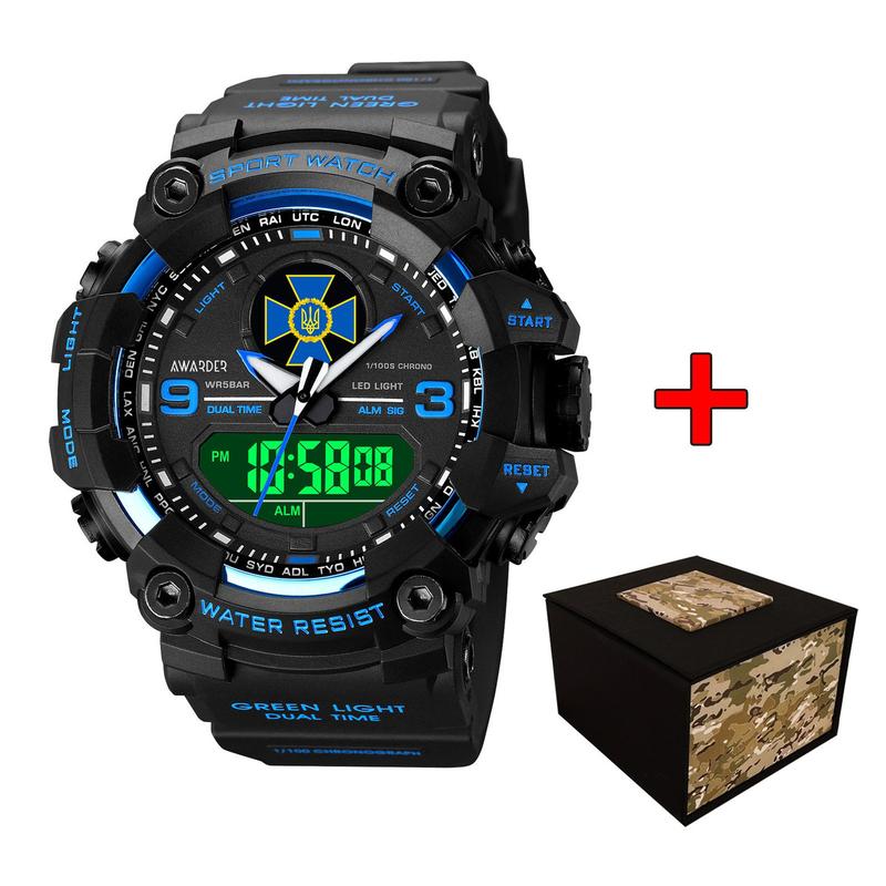 Представляємо наручний годинник Awarder 001BUSBU – стильний і функціональний аксесуар для сучасного чоловіка. Ці годинники поєднують в собі спортивний та армійський стиль, що робить їх ідеальними для активного способу життя. З їхнім великим діаметром корпусу 54 мм та вагою 72 г, годинник дарує відчуття надійності та комфорту. Корпус виготовлений із міцного полімеру, а ремінець з каучуку забезпечує зручну та надійну посадку на зап’ясті. Водонепроникність до 50 метрів робить їх придатними для використання в різних умовах, а електролюмінесцентна підсвітка дозволяє легко зчитувати час навіть у темряві. Цей кварцовий годинник має стрілочно-електронний циферблат з індикацією годин, хвилин, секунд, дня тижня та числа. Додаткові функції, такі як будильник, календар, секундомір та другий часовий пояс, роблять його незамінним помічником у повсякденному житті. Годинник Awarder 001BUSBU постачається в стильній коробці, що робить його чудовим подарунком для себе чи близьких. Обирайте надійність та якість українського виробництва з Awarder!
