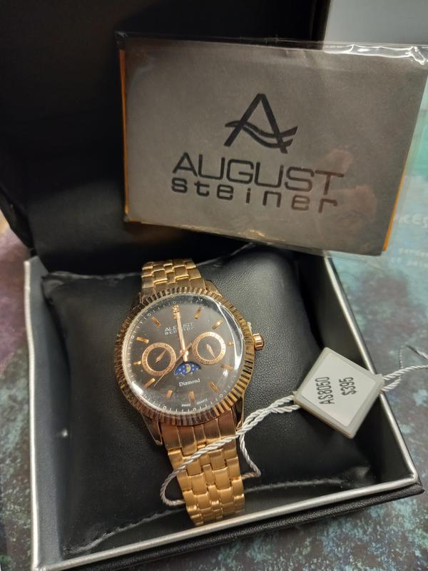 ВАЖНО: Все часы на моей страничке новые, брендовые, ОРИГИНАЛ 100%(спрашивайте любые важные для Вас ньюансы идентифицируюшие оригинальность), цены отличнейшие. Выкуплены как остатки склада, потому цена супер. Может быть где-то примята упаковка, но в основном все идеально. Детали уточняйте. Задавайте вопросы до покупки, всегда рада ответить и сотрудничать. Совершенно новые, шикарные, в фирмовой упаковке, с полным комплектом документов. Цена на бирке 395$. Цена на розетке на аналогичную модель в серебряном цвете- на фото. Наручные часы August Steiner. Мужские наручные часы August Steiner Характеристики Мужские наручные часы August Steiner (1704812) Тип Мужские Механизм Кварцевый Тип циферблата Стрелочный Стиль Классический Функции Таймер Тип крепления Браслет Стекло Hardlex crystal Формат времени12 ч Вид циферблатаИндексы Форма корпусаКруглая Материал корпуса Нержавеющая сталь c PVD покрытием Основной цвет циферблатаЧерный Инкрустация камнями Бриллианты Водонепроницаемость30 м Цвет ремешка/браслетаСеребристый Материал ремешка/браслетаPVD + Нержавеющая сталь + Полимер Ширина ремешка/браслета20 Фабрика сборкиСША Подсветка Люминесцентная Вес70 Страна регистрации брендаСША Цвет корпусаСеребристый Диаметр корпуса40 Особенности модели Для мужчин Отправка новой почтой. (49).