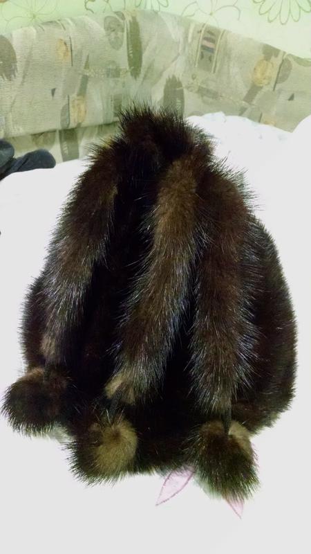 темно коричневая,фото со вспышкой дает светлее тон,обьем 56см