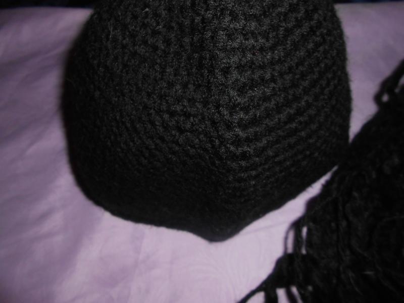 подростковая шапка вязанная плотной вязки.модель (горшок) цвет черный. высота-19см. на окружность головы 46-52см-55 грн. шарф около двух метров есть дырка модель такая что можно зашить и не будет видно-уценен-40 грн.вместе отдам за 80 грн.