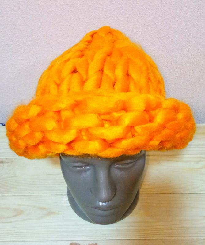 Шапка очень модной в этом сезоне крупной вязки. Нить - акрил. Пушистая и мягкая. Носится с отворотом внизу. Высота 32см, ширина 26см