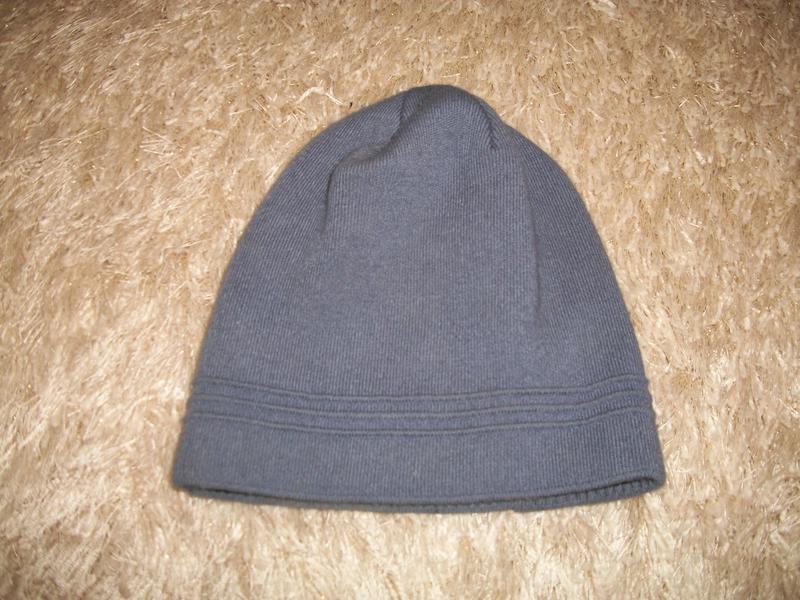 Серая теплая плотная шапка с кантиком рубчик. Длина 24 см, ширина 23 см.