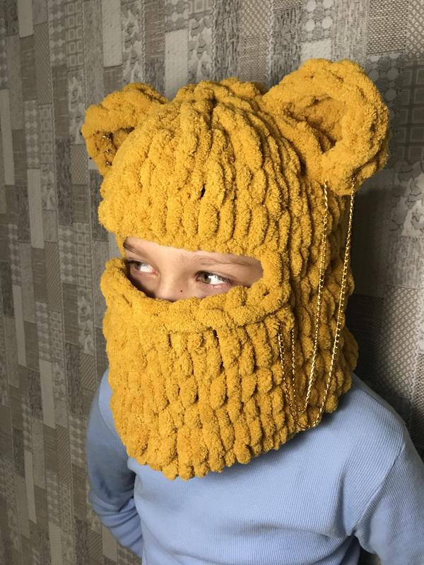 Горчичная балаклава шапочка с ушками мишка тренд 2022 черная зайчик