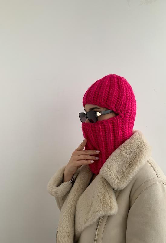 Дополнительные характеристики: Пол: Женский Цвет : Розовый Материал : Пряжа Модель : Шапка-шлем Цвет: Малиновый Размер головного убора: S / 53-54