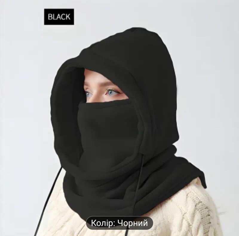 Новый баф флисовый. Черного цвета. Теплый. подходит как мужчинам, так и женщинам. Один размер. Капюшон (шапка и шарф 2в1).
