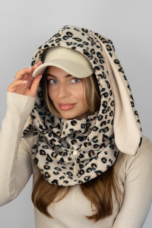 Флисовый каптур, капюшон-балаклава braxton "luffon" (6106), леопардовый + песок