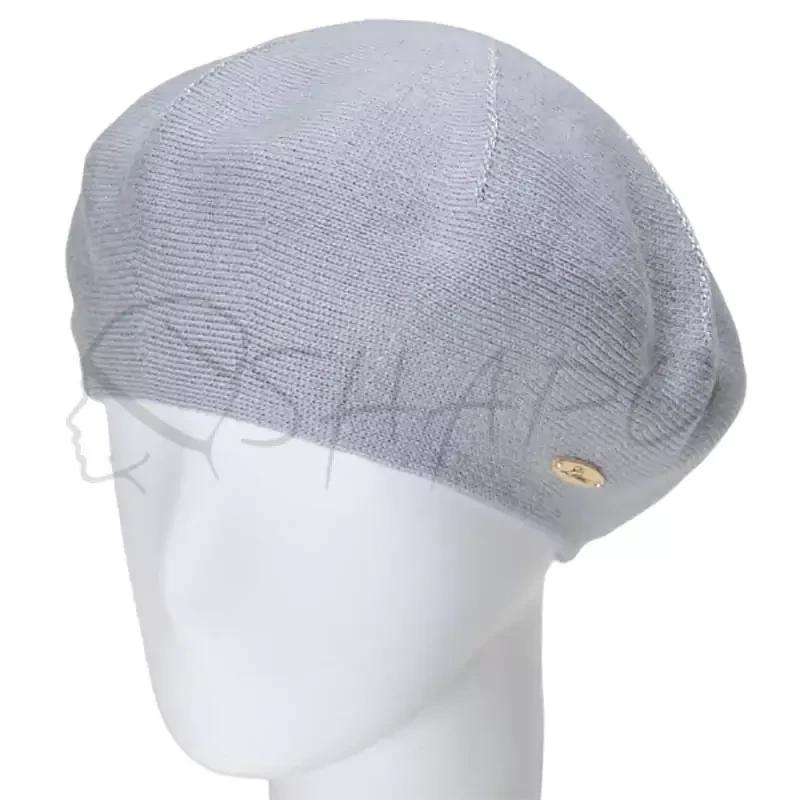 Берет женский с аккуратным узором люрексовыми полосками тонкой вязки не большой двойной li...