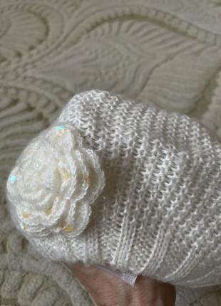 Шапка берет для девочки, новейший с хорошим вязаным цветком, подойдет на теплую весну или прохладное лето, цвет молочный, качество отменная, является торг