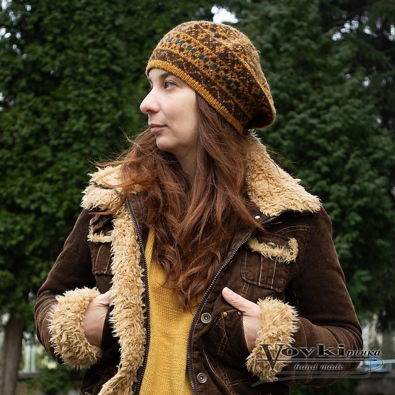 Берет вязаный с рисунком для девушки