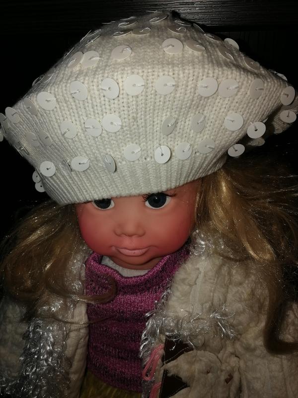 Берет белого цвета с пайетками.