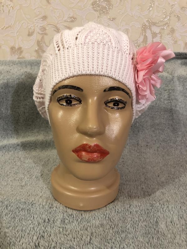Берет на девочку. Декорирован объемным цветком, надписью по вышивке и стразами Подойдет на весну или теплую осень Состояние: новый Размер: где-то на объем 46-48 см; Замеры: объем по низу 37 см не в растянутом состоянии (хорошо тянется) Тканина: 50% бавовна; 50% акрил Цвет: бледно-розовый