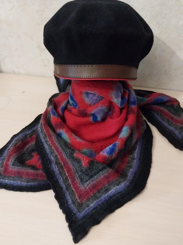 Баскский берет известного французского бренда Vrai Basque,береты класса люкс из 100% чистой шерсти и коровья кожу, уникальная вещь, более чем 80 лет истории, символ Франции, размер показала на фото, также валенный платок из шерсти, выполненный из техники валение, берет -800 грн, платок - 350 грн, цвет берета темно-синий