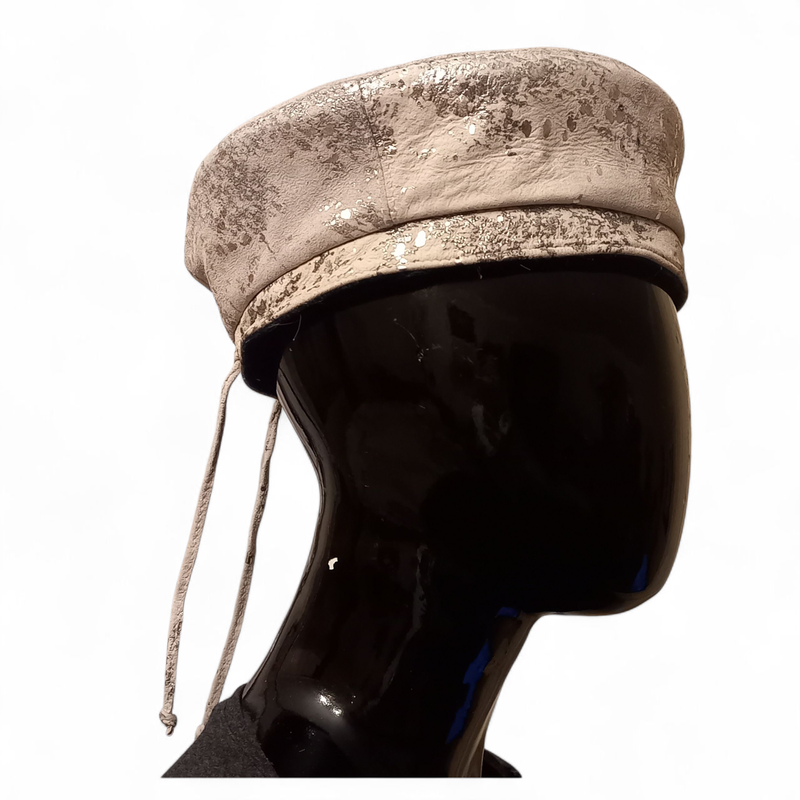 Кожаный нубуковый берет с эффектом серебряного кракелюра.