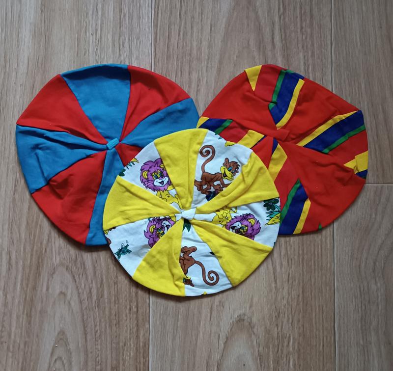 Детские шапочки берете. Изготовлены из 100% хлопка, подходит как для девочек, так и для парней. На мягком манжете. Цена за комплект из 3 шт. р.22 / 0-6 месяцев / ОГ 42-44 Возвращение и обмен на шапки нет!