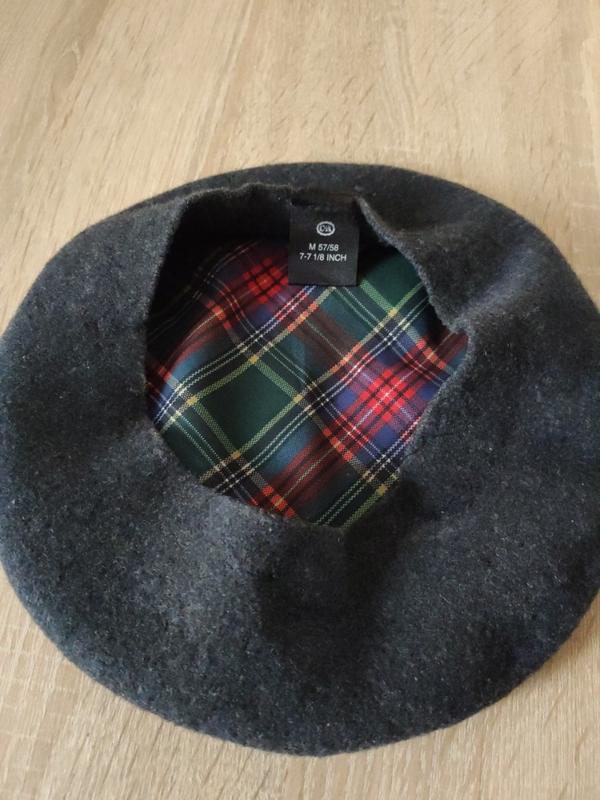 Берет красивого серого цвета 100 процентов шерсть с подкладкой под шотландку