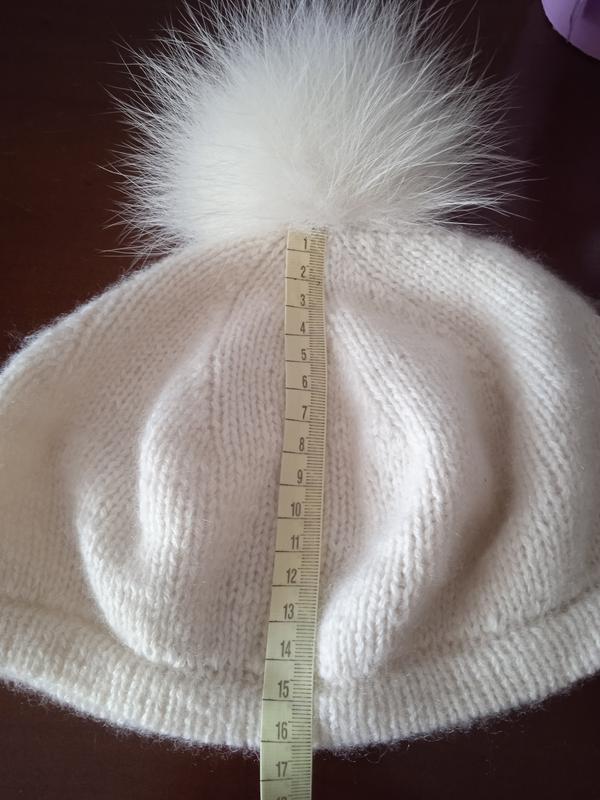 Классический берет молочного цвета связан из 100% кашемира, с помпоном из натурального меха. Очень мягкий, подходит для чувствительной детской кожи. Замеры на фото