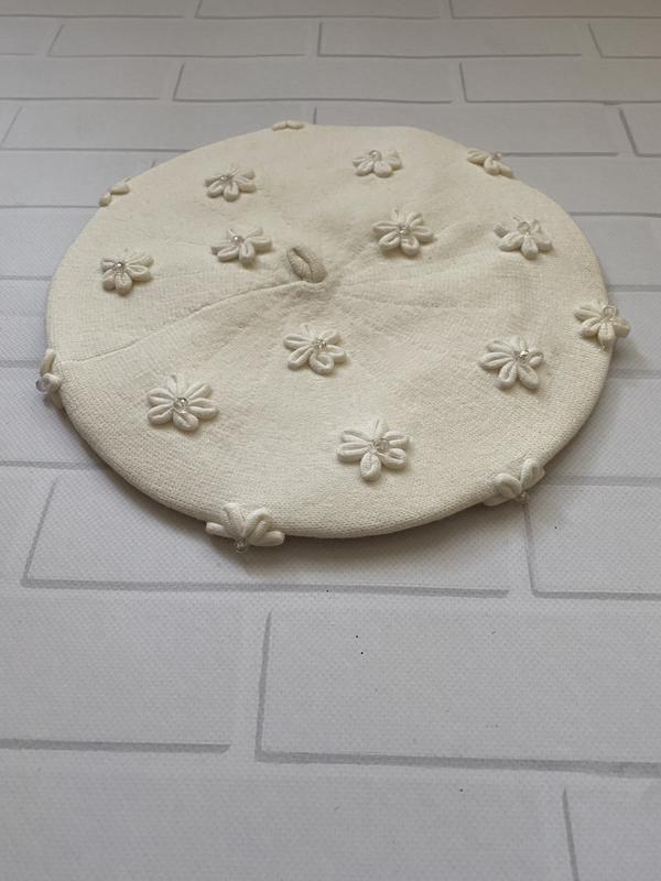Очень красивый, НОВЫЙ берет нежного молочного цвета с ненавязчивым декором.
