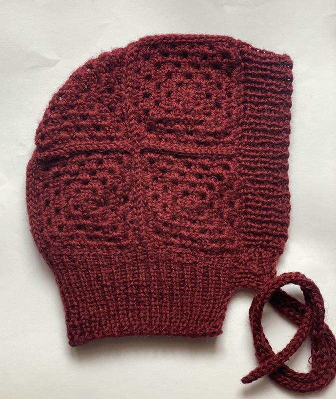 Чепець бабусин квадрат ручної роботи бордового кольору