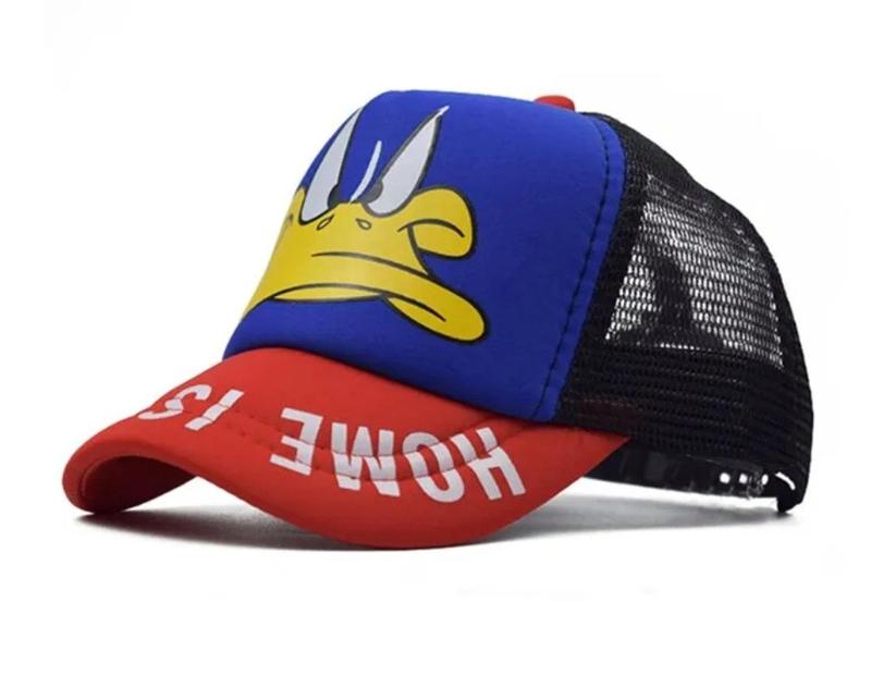 Детская Кепка Тракер Утка (Утиные истории, Дональд Дак, Даффи Дак) с сеточкой, Унисекс Детская кепка Тракер подойдет под любой стиль одежды вашего ребенка. Такая кепка просто незаменима в летнюю пору, особенно если вы отправляетесь на прогулку, пляж, рыбалку или в поход. Плотный изогнутый пластиковый козырек держит свою форму и защищает глаза от солнца. Передняя часть кепки выполнена с поролона который отлично держит форму, остальная часть сделана с пластиковой сетки и она помогает дышать голове вашего ребенка. Размер длины окружности головы регулируется 46-52см с помощью пластикового фиксатора. Данная кепка тракер подходит как мальчикам, так и девочкам. Цвет - черный, белый, красный, синий. Головные уборы -- это неотъемлемые части каждого гардероба. Наш интернет- магазин в своем роде специфичен и своеобразен в разновидности головных уборов, убедитесь в этом сами. Хотелось бы обратить Ваше внимание на наш не побоимся сказать большой выбор головных уборов (шапки, панамы, кепки бейсболки, кепки тракеры, кепки снепбек с прямым козырьком, маски, баффы, балаклавы, повязки, обручи как для взрослых, так и для детей). У Вас есть большой шанс пополнить свой гардероб на любой вкус и цвет! Приятных Вам покупок!