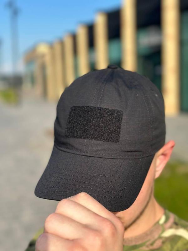 Кілька примірників у наявності Бейсболка-кепка в кольорі BLACK Тканина - Ріп-Стоп Преміум Щільність - 240 г/м² Склад - 35% бавовни, 65% поліестеру Матеріал Ріп-стоп призначений для спеціального одягу з максимально міцними властивостями, а співвідношення бавовни і синтетики в пропорції 35х65 зарекомендував себе як оптимально комфортний. Така тканина дуже міцна, зносостійка, що не мнеться, швидко сохне і дуже гідно виглядає! Стандартна глибина посадки. Розмір регульований: 56-60, застібка на "велкро" липучці. На лицьовій стороні - "велкро" 100мм х 50мм. На потилиці - "велкро" 100мм х 25мм. По центру верхньої частини - "велкро" 25мм х 25мм. Довжина козирка - 7см. Відмінна якість. Розмір: 53-62