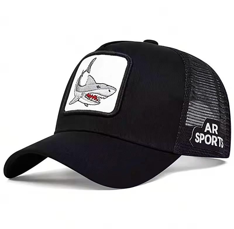 Кепка тракер логотип "акула" (shark) с сеточкой черный, унисекс wuke one size