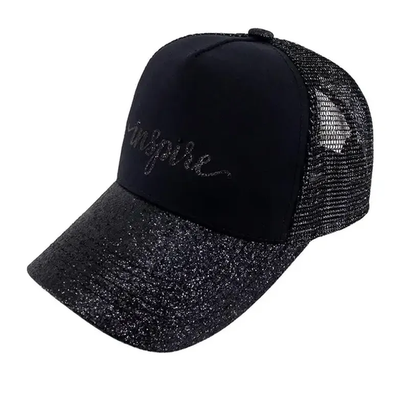 Стильная черная бейсболка для девочки. Эта модель сочетает в себе сетку и ткань, а также регулируемый объем. Он украшен надписью «Inspire». Благодаря козырьку отлично защищает от солнца. Состав 100% хлопок, сеточка - 100% полиэстр