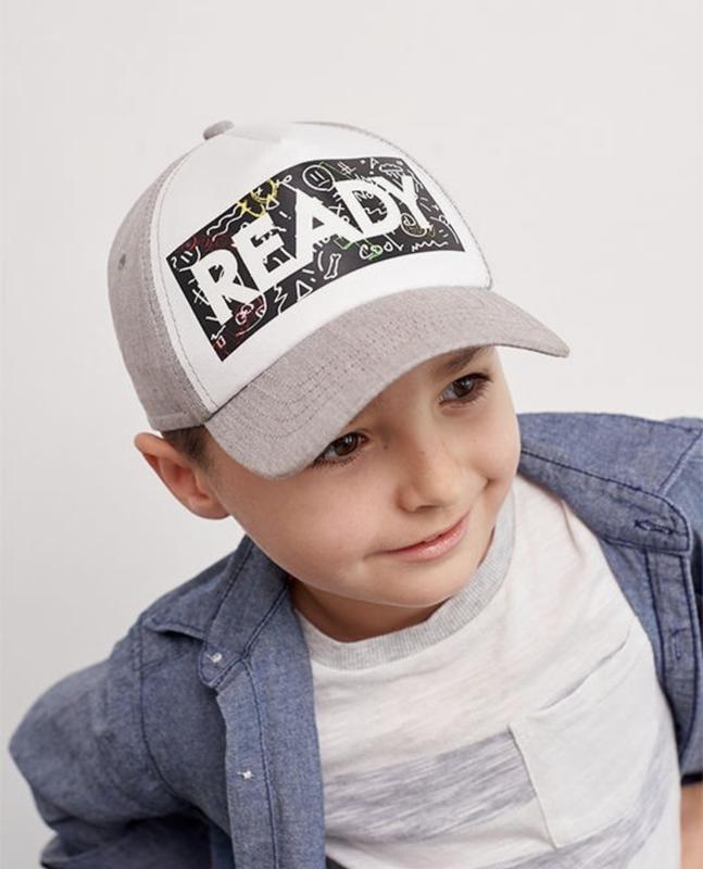 Стильная кепка для смелых мальчиков. Оригинальное сочетание сдержанной цветной гаммы с трансфером "Ready", придаст уверенности вашему ребенку. Состав - 100% хлопок. Размер кепки регулируется. Размер указан 50, но как на меня маломерит. Десь на 48 см.