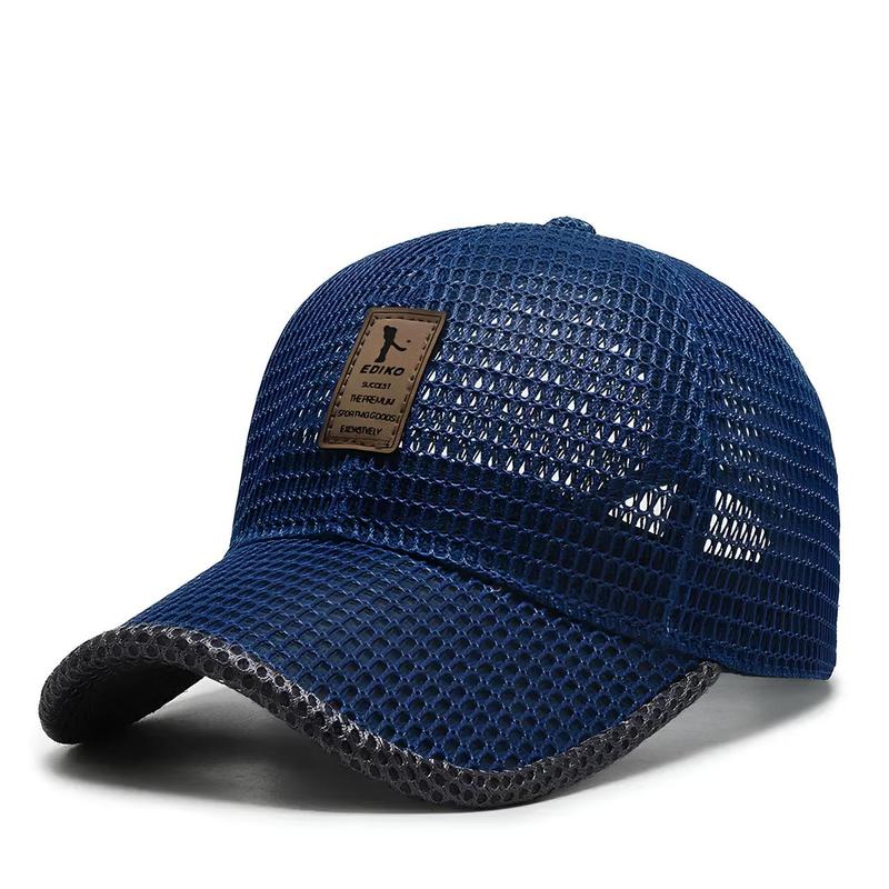 Бейсболка синяя в сетку. сетчатая бейсболка синего цвета. синяя кепка с хорошей вентиляцие...