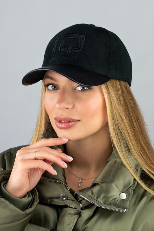 Бейсболка кашемировая унисекс braxton "тimeless", козырек экокожа, вышивка (6105-1), черны...