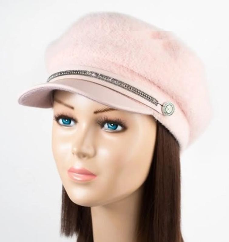 Кепка из ангоры симона персикового цвета 9715