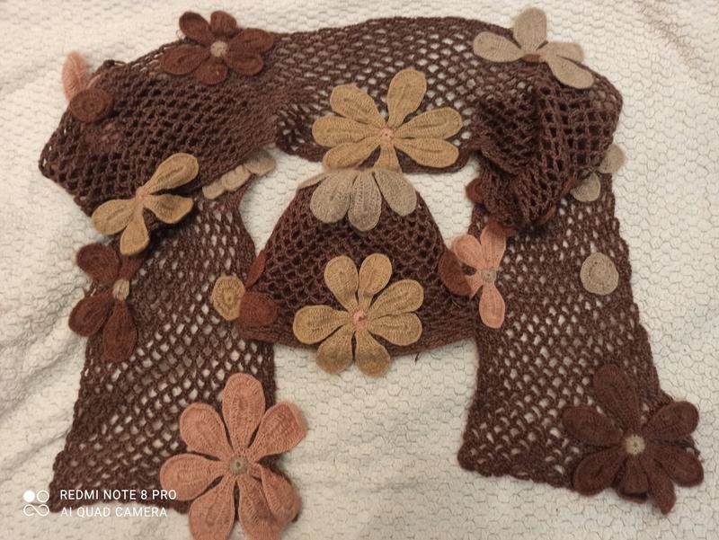 Очень милый вязаный комплект шапки и шарфа в стиле бохо, р.54-59