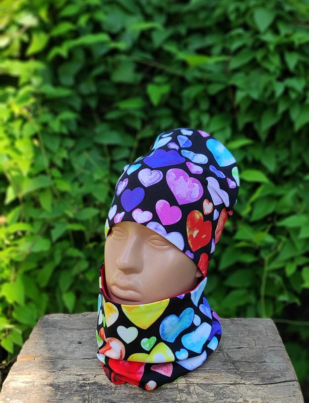 Двошарова шапка и хомут на обхват голови 48-50 см. 95% бавовна, 5% еластан.