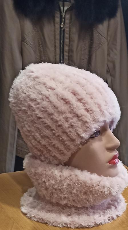 Шапка та снуд жiночий,, ручна робота, пряжа хутро, пудра, р. 56-60. комплект дуже теплий...