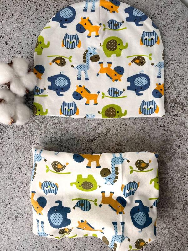 Дитячий весняний трикотажний набір , шапка та хомут до 2-ох років. "слоники"( заміри в опи...