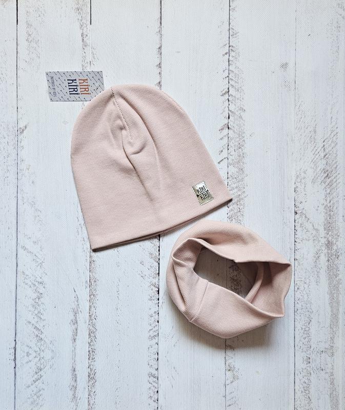 Шапка рубчик шапка +хомут шапка снуд, комплект, демі шапка 50-55 50 52 54