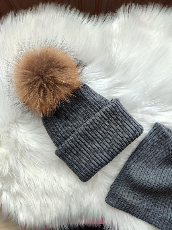 Самый трендовый универсальный комплект. Хочешь Фемели Лук? -Легко! Двойная, мягкая, объемная теплая вязка - согреет и ребенка от 5 рочков, и взрослого Отворот на шапке не пришит, так что высоту (глубину) шапки можно регулировать по удобству Хомут - плотная вязка в 2 слоя Склад: 50%-вовна, 50%-ПАН На осень-теплую зиму Размер - 52-58см Стоимость шапочки - 360грн ( помпон не входит в стоимость, оплачивается отдельно от 150грн) Стоимость комплекта - 500грн